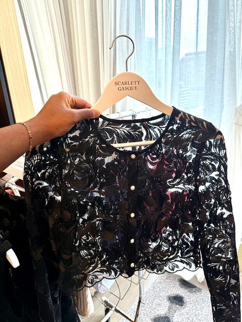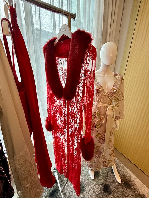 What I admired the most about Scarlett Gasque was Rogers explaining her clothes are that break between inside and outside wear, saying for example, the robes she sells could be worn for a girlfriends hang out at home, or the lingerie sets serve a purpose for those times you don’t want to wear sweat pants but still want to feel chic.